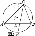 (2)如图,连接OP,交AB于E,根据垂径定理得到OP⊥AB,AE=$\frac{1}{2}$AB=4.根据勾股定理得到OE=$\sqrt{{5}^{2}-{4}^{2}}$=3,PE=2.求得S△ABP=$\frac{1}{2}×8×2$.于是得到当CP经过圆心O时,如图,C到AB距离最大,即△ABC的AB边上的最大高线是CE=8.求得四边形ACBP的最大面积是40.即可得到结论.