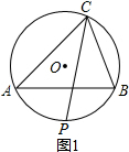 分析 (1)点P位置不会随点C的运动而变化,根据角平分线的定义得到∠ACP=∠BCP,于是得到$\widehat{AP}$=$\widehat{BD}$,即P是劣弧AB的中点.即可得到点P位置不会变化.