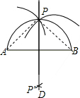 分析 过点P作直线l的垂线,连接AP,BP,分别以点AB为圆心,以AP,BP为半径画圆,两圆与直线PD的交点即为点P′.