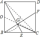 分析 根据正方形对角线的性质可得出当E移动到与C重合时,F点和D点重合,此时G点为AC中点,故①错误;求得∠BAE=∠CBF,根据正方形的性质可得AB=BC,∠ABC=∠C=90°,然后利用“角角边”证明△ABE和△BCF全等,根据全等三角形对应角相等可得AE=BF,判断出②正确;根据题意,G点的轨迹是以AB中点O为圆心,AO为半径的圆弧,然后求出弧的长度,判断出③错误;由于OC和OG的长度是一定的,因此当O、G、C在同一条直线上时,CG取最小值,根据勾股定理求出最小CG长度.