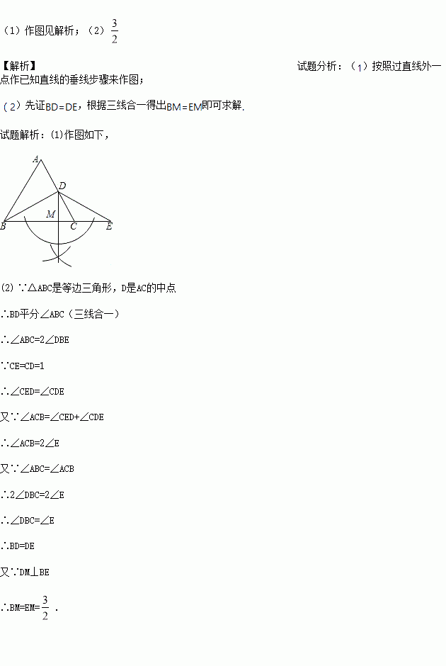 如图,△ABC是等边三角形,点D是AC的中点,延长BC到E,使CE=CD.