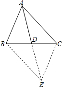 在三角形ABE中,根据AB+BE>AE,得:AB+AC>2AD,