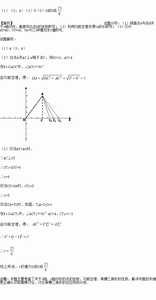 轴正半轴上的一个动点,当△ATO是等腰三角形时,求