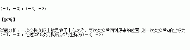 规定:在平面直角坐标系xOy中,“把某一图形先沿x轴翻折,再沿y轴翻折”为一次变化.如图,已知正方形ABCD,顶点A(1,3),C(3,1).若正方形ABCD经过一次上述变化,则点A变化后的坐标为 ,如此这样,对正方形ABCD连续做2015次这样的变化,则点D变化后的坐标为 .