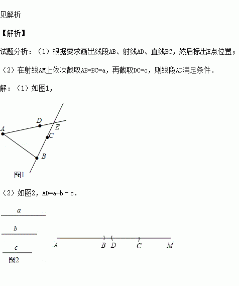 (2)如图2,已知线段a,b,c,用圆规和直尺作线段,使它等于a+b﹣c.(注明结果,不写作法)