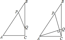 如图,Rt△ABC中,∠ACB=90°,AC=6cm,BC=8cm,动点P从点B出发,在BA边上以每秒5cm的速度向点A匀速运动,同时动点Q从点C出发,在CB边上以每秒4cm的速度向点B匀速运动,运动时间为t秒(0<t<2),连接PQ.