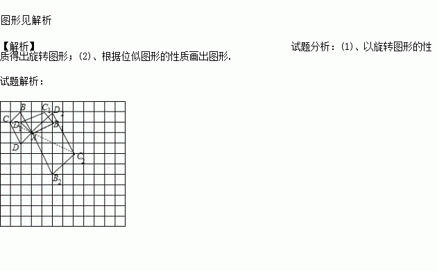 (2)以A为位似中心,将四边形ABCD作位似变换,且放大到原来的两倍,得到四边形AB2C2D2.