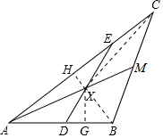 分析 连接XC、XB,作XG⊥AB于G,XH⊥AC于H,根据三角形的中线的性质得到△AMB的面积=△AMC的面积,△XMB的面积=△XMC的面积,根据三角形的面积公式计算即可.