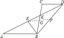 分析 AB=BC+CD.作△ABD的中位线,由中位线定理得EF∥AB∥CD,可知G为BC的中点,由平行线及角平分线性质得∠GEB=∠EBA=∠GBE,则EG=BG=$\frac{1}{2}$BC,而GF=$\frac{1}{2}$CD,EF=$\frac{1}{2}$AB,利用EF=EG+GF求线段AB、BC、CD三者之间的数量关系.