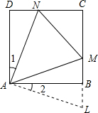 解:(1)如图,延长CB至L,使BL=DN,则Rt△ABL≌Rt△ADN,故AL=AN,| 2 |
