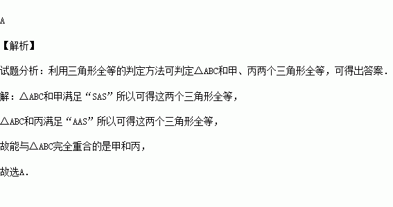 (2015秋•驻马店期末)如图1是玩具拼图模板的一部分,已知△ABC的六个元素,则图2中甲、乙、丙三个三角形中能和△ABC完全重合的是( )