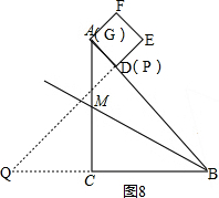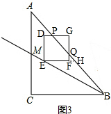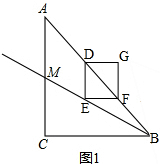 分析 (1)首先根据DE∥AM,可得△BDE∽△BAM,所以$\frac{BE}{BM}=\frac{DE}{AM}$,据此求出BE的值;然后用BE的值除以正方形DEFG运动的速度,求出正方形DEFG移动多少秒时,点D在线段AB上即可.