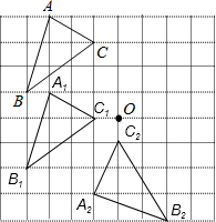 分析:(1)根据网格结构分别找出点A、B、C平移后的对应点A1、B1、C1的位置,然后顺次连接即可,再找出△A1B1C1绕点O逆时针旋转90°后的对应点A2、B2、C2的位置,然后顺次连接即可;