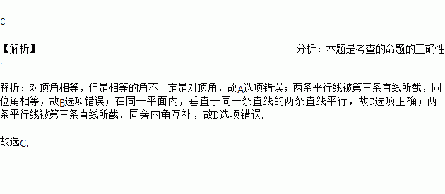 C. 在同一平面内,垂直于同一条直线的两条直线平行