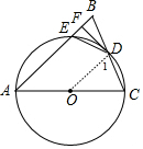 分析 (1)连结OD,如图,先证明OD∥AB,则由DF⊥AB可判断DF⊥OD,然后根据切线的判定定理可得直线DF与⊙O相切;