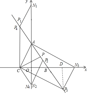在平行四边形ACP3N3中,设P3(x3,-4),代入y=-$\frac{4}{3}$x+4得,-4=-$\frac{4}{3}$x3+4