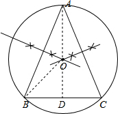 分析:(1)AB和AC的中垂线的交点就是圆心,则圆即可作出;