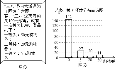 ΪÀ­¶¯ÄÚÐ裬´Ì¼¤Ïû·Ñ£¬È«¹ú¿ªÕ¹¡°¼ÒµçÏÂÏ硱»î¶¯£®Ä³¼ÒµçÁãÊÛÉÌ¡°Èý•°Ë¡±¸¾Å®½ÚÔÚij´åÕò¿ªÕ¹¹º¼Òµçʵʩ²¹Ìù£¨¹ú¼ÒÕþ²ß·¶Î§£©£¬²¢³é½±ÅÉËιºÎïȯ»î¶¯£¬º£±¨Èçͼ¢ÙËùʾ£®ÕÅÈýÍ¬Ñ§Ëæ»úµ÷²éÁ˲¿·Ö²ÎÓë»î¶¯µÄ´åÃñ£¬Í³¼ÆÁË200È˴εÄÃþ½±Çé¿ö£¬²¢»æÖƳÉͼ¢ÚµÄƵÊý·Ö²¼Ö±·½Í¼£®