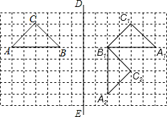 分析:(1)根据网格结构找出点A、B、C关于直线DE的对称点A1、B1、C1的位置,然后顺次连接即可;
