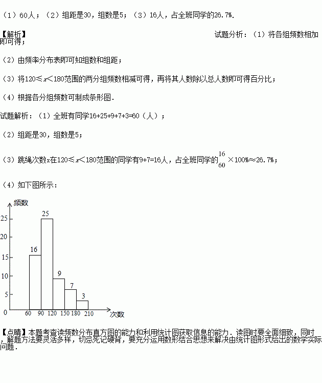 体育委员统计了全班同学60秒跳绳的次数,并列出下面的频数分布表: