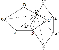 分析:过点O作CD的垂线,然后分别截取OC′=OC,OD′=OD,连接OA,作∠AOA′=90°,然后截取OA′=OA,连接OB,作∠BOB′=90°,然后截取OB′=OB,连接OE,作∠EOE′=90°,然后截取OE′=OE,再顺次连接即可.