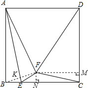 解答 解:作FN⊥BC,FM⊥DC,垂足分别为N,M,连接BF,交AE于K,