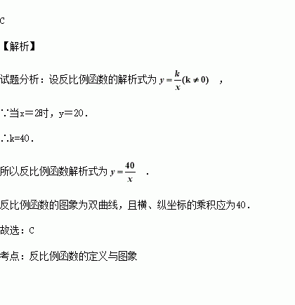 一台印刷机每年可印刷的书本数量y(万册)与它的使用时间x(年)成反比例关系,当x=2时,y=20.则y与x的函数图象大致是( )