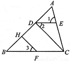 已知,如图,∠1=∠ACB,∠2=∠3,求证:∠BDC+∠DHF=180°