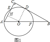 解答 解:(1)作OH⊥AC于H,连结OD,如图1,设⊙0的半径为r,