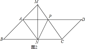 (2)根据已知条件得出BN=MN,再根据BM=AB+AM,由边形ABCD是平行四边形,AP∥BC,当四边形ANPM是平行四边形时,得到PN∥AM,PN=AM,于是证得PN∥AB,又因为AP∥BN,得到四边形ABNP是平行四边形,PN=AB=2,BN=AP=3t,由勾股定理得出BN=MN=3t,由勾股定理得出结果.