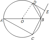 分析 (1)平行.连接OD,因为DE与⊙O相切,得出OD⊥DE.根据BD是∠ABE的平分线,推出∠ODB=∠DBE,得到OD∥BE.推出BE⊥DE,根据AB是⊙O的直径,得到AC⊥CE,即可推出答案;