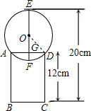 课堂上,师生一起探究知,可以用圆柱形管子的内径去测量球的半径.小明回家后把小皮球置于保温杯口上(内径AD的长为8cm),经过思考找到了测量方法,并画出了草图(如图).请你根据图中的数据,帮助小明计算小皮球的半径.