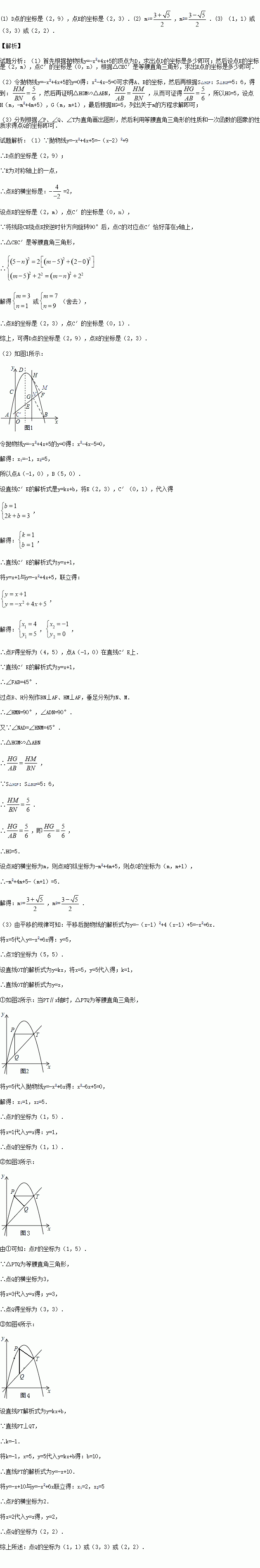 (3)图2所示的抛物线是由y=-x2+4x+5向右平移1个单位后得到的,点T(5,y)在抛物线上,点P是抛物线上O与T之间的任意一点,在线段OT上是否存在一点Q,使△PQT是等腰直角三角形?若存在,求出点Q的坐标;若不存在,请说明理由.