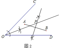 (2)作AB的中垂线和∠COD的平分线,两线的交点即为所作的点P.