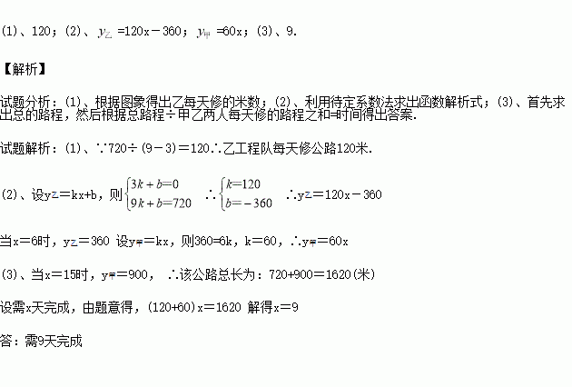 (3)若该项工程由甲、乙两工程队一直合作施工,需几天完成?