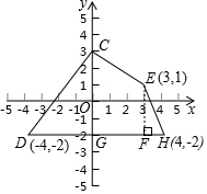 分析 过点E作EF⊥DH于F,然后根据四边形CDHE的面积等于两个直角三角形的面积与一个梯形的面积的和列式计算即可得解.