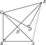 分析 作BE交AC于H,如图,先利用勾股定理计算出AC=$\sqrt{2}$AB=2,再利用旋转的性质得CA=CE,∠ACE=60°,则可判断△ACE为等边三角形,所以EC=EA,加上BC=BA,于是可判断BE为AC的垂直平分线,根据根据等腰直角三角形的性质和等边三角形的性质得到BH=$\frac{1}{2}$AC=1,EH=$\frac{\sqrt{3}}{2}$AC=$\sqrt{3}$,从而可得到BE的长.