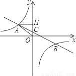 (k≠0)的图象交于第二、四象限内的A、B两点,与y轴交于C点,过点A作AH⊥y轴,垂足为H,OH=3,tan∠AOH=