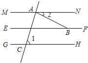 (本题8分) 如图,MN//EF,GH//EF,BA⊥CA于点A,若∠1=70º