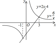 即两函数的两交点分别为(3,2),(-1,-6),作出两函数图象,如图所示: