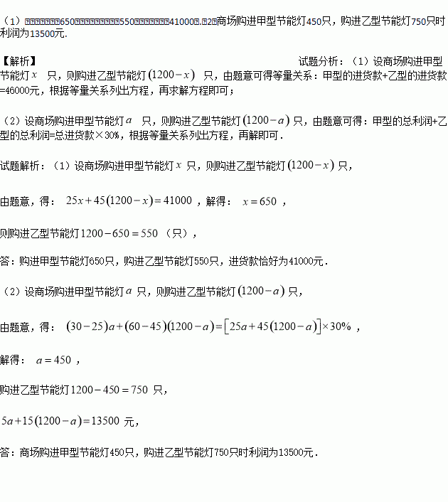 (2)如何进货,商场销售完节能灯时获利恰好是进货价的30%,此时利润为