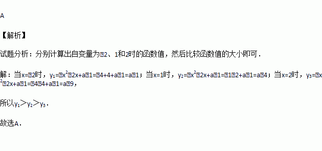 设点(﹣2,y1),(1,y2),(2,y3)是抛物线y=﹣x2﹣2x+a﹣1上的三点,则y1、y2、y3的大小关系为( )