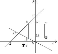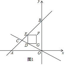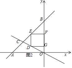 分析 解:设D(x,-$\frac{1}{2}$x),根据DE∥OB,得到E(x,x+6),求得DE=$\frac{3}{2}$x+6,当GF落在y轴上时,解方程组得到C(-4,2),求得x=-$\frac{12}{5}$,当-4<x≤-$\frac{12}{5}$时,如图1,当-$\frac{12}{5}$<x<0时,如图3,根据矩形的面积公式即可得到结论.