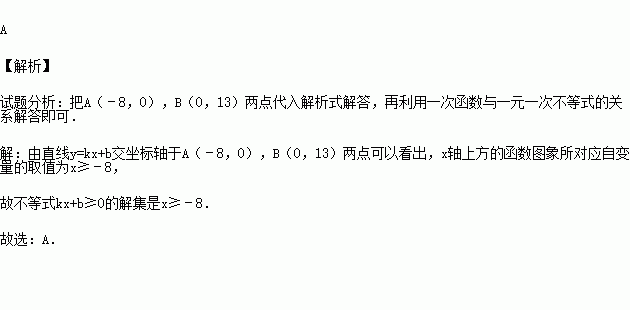 直线y=kx+b交坐标轴于A(﹣8,0),B(0,13)两点,则不等式kx+b≥0的解集为( )
