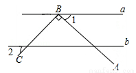 如图,直线a∥b,点B在直线a上,AB⊥BC,若∠1=38°,则∠2的度数为( )