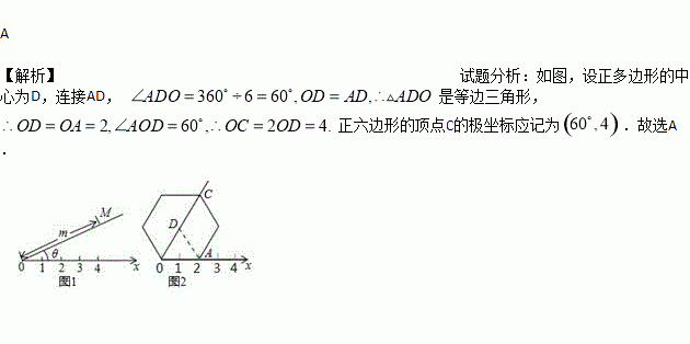 应用:在图2的极坐标系下,如果正六边形的边长为2,有一边OA在射线Ox上,则正六边形的顶点C的极坐标应记为( )
