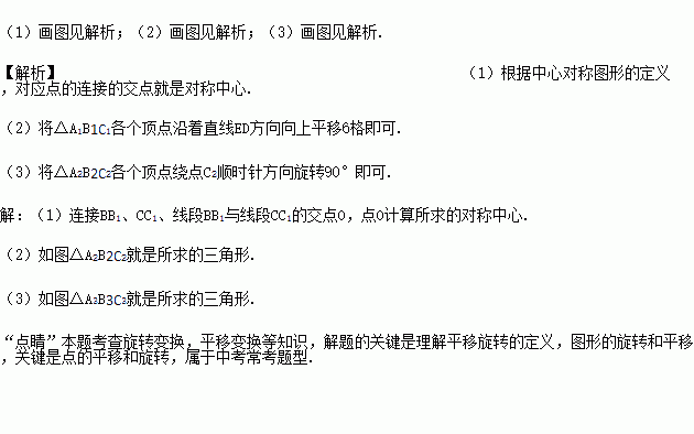 (1)画出△ABC和△A1B1C1的对称中心O;