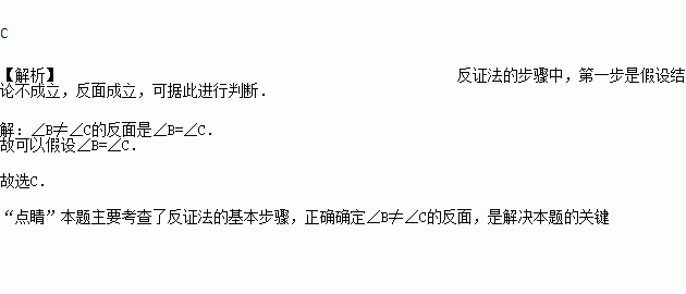 已知在△ABC中,AB≠AC,求证:∠B≠∠C.若用反证法来证明这个结论,可假设( ) 。