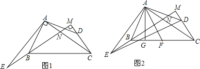 (3)在(2)的条件下,如图2,AF,AG分别为△ABC的中线,高,连接ED,若△ADE的面积为14,AG=4,求CF的长.