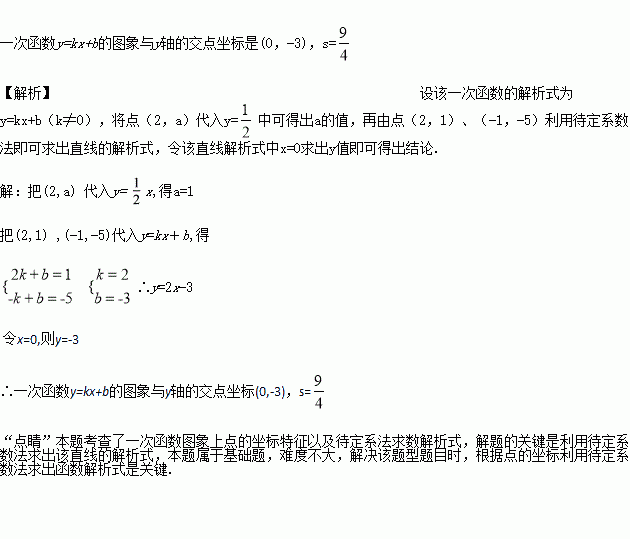 x的图象相交于点(2,a).求这个一次函数的图象与x轴的交点坐标及与坐标轴围成的三角形的面积。
